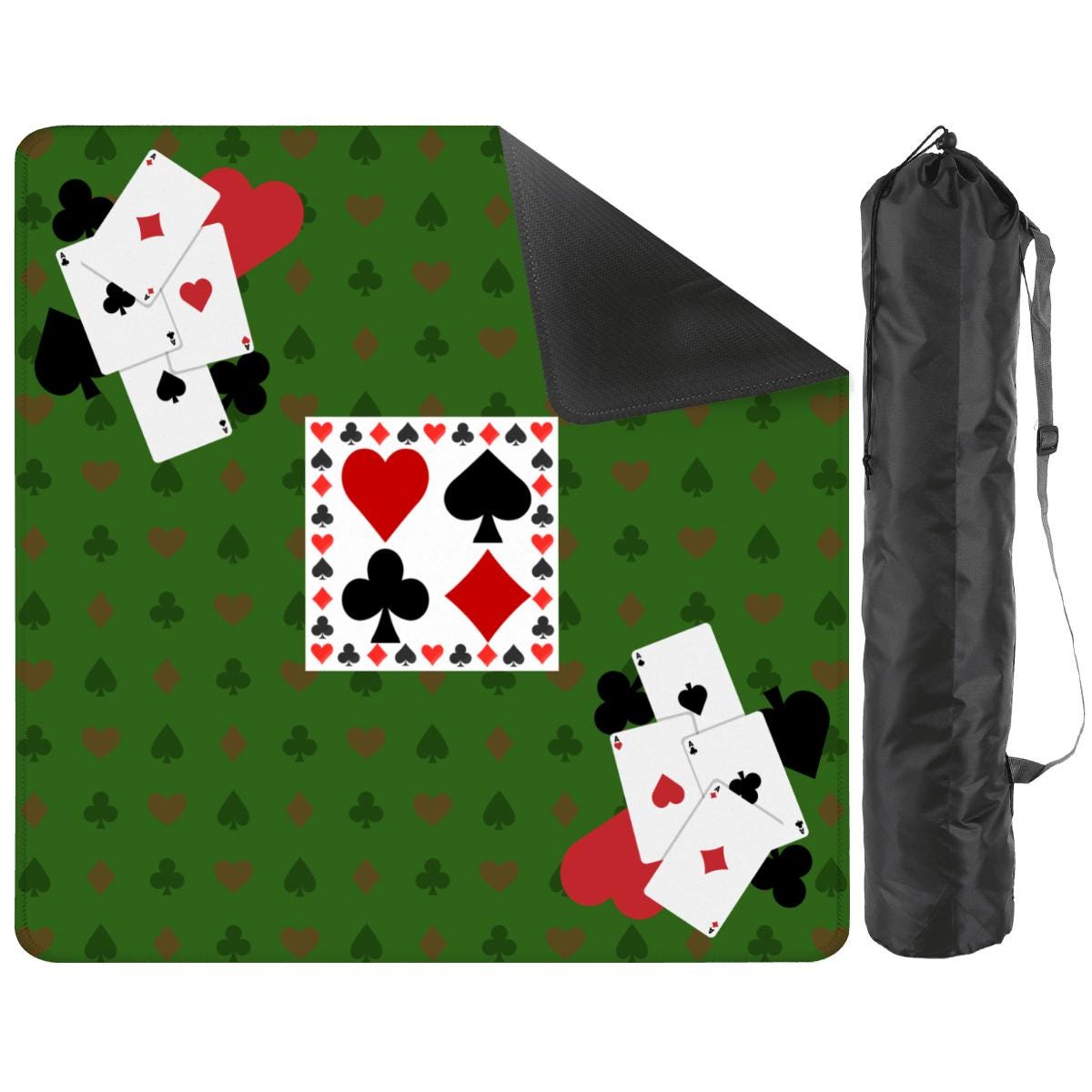 Canasta game mat. Our top-quality 31.5 x 31.5-inch game mat is super soft and durable and rolls up for on-the-go fun. The non-slip grip on the back means no more shifting, even during the most exciting rounds. Get ready to level up your game nights! Ships folded or rolled, lay flat for a few hours to flatten or pop in the dryer on low for a few mins. Will continue to flatten over time with play. Comes with storage sleeve. 3mm in thickness.