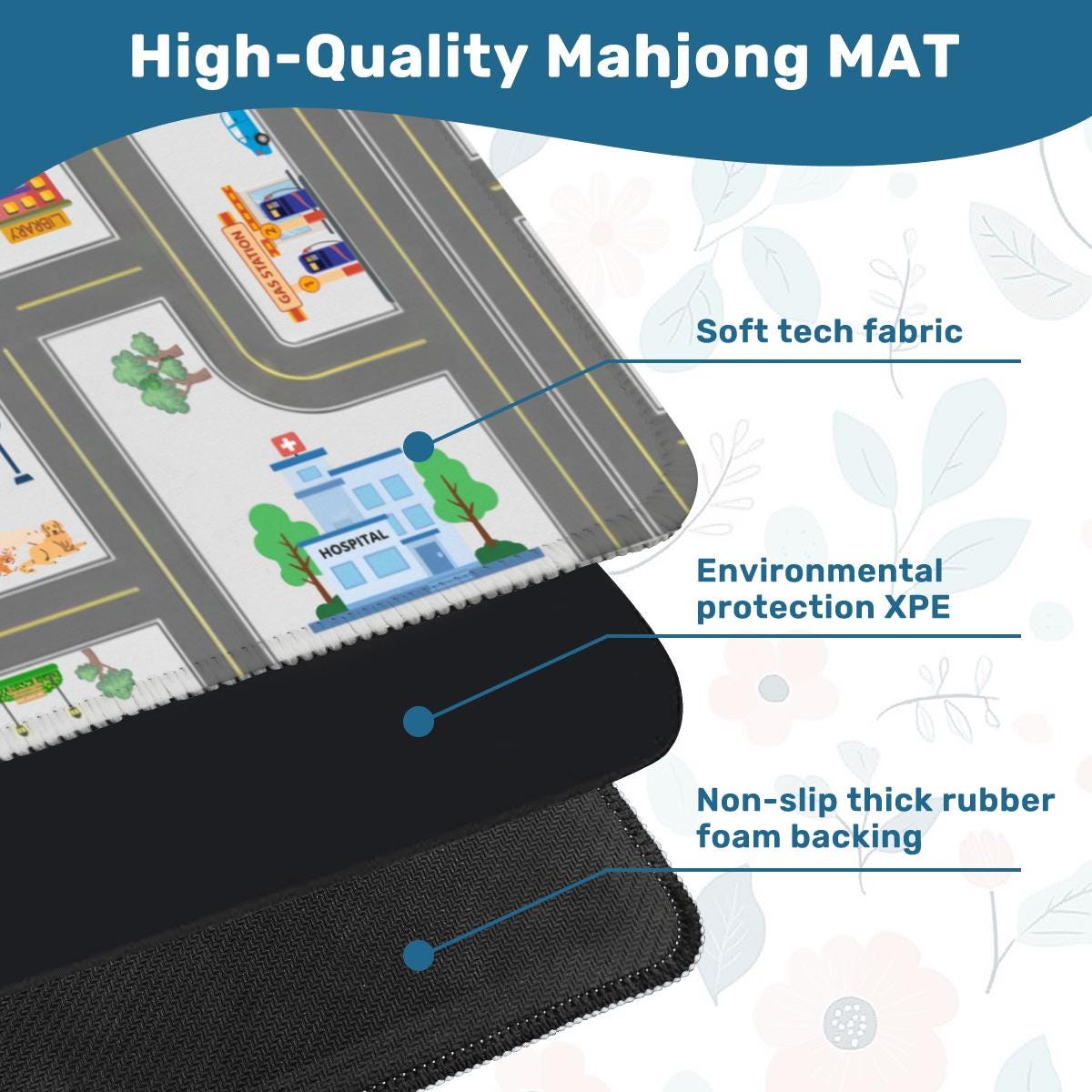 - Premium Quality: Made from durable polyester with a non-slip backing to eliminate movement. Generous Size: 31.5" x 31.5" square, 3mm thick for a comfortable and stable playing surface. Noise-Reducing & Table-Protecting: Smooth, soft top reduces tile clatter and stops table scratches. Complete Set: Includes Game mat & storage bag.